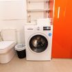 El apartamento tiene un baño moderno con ducha y lavadora. Cocina altamente equipada, tanto para corta o larga estancia. nevera grande, microondas, vitrocerámica.